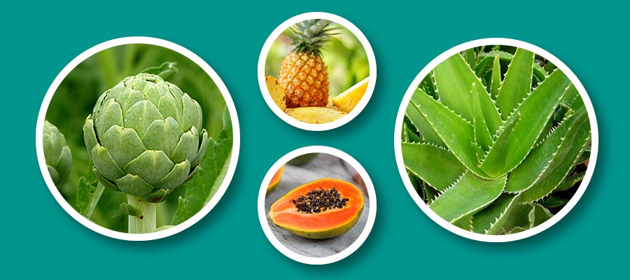 Probavni enzimi iz ananasa i papaje pomažu razgraditi bjelančevine i sprječavaju apsorpciju masnoća unesenih hranom. Razgradnjom bjelančevina poboljšavaju njihovu apsorpciju i pravo su zbog toga odlični kao lijek protiv nadutosti i zatvora.