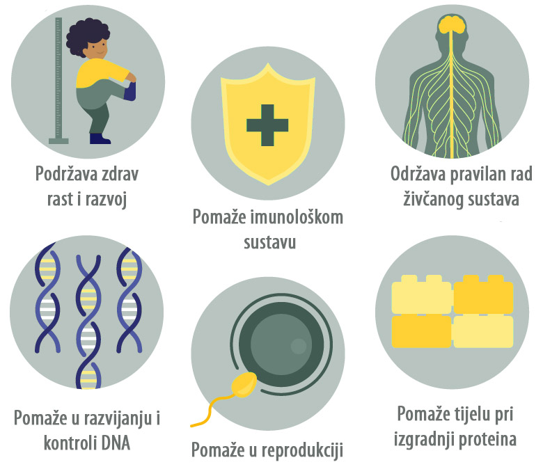 Iznimno je važan i sudjeluje u brojnim tjelesnim procesima i funkcijama. Cink ima jako važnu ulogu u imunološkoj obrani i očuvanju zdravlja. Jedan je od najbitnijih čimbenika za normalan rast i razvoj, pomaže kognitivnim funkcijama, zacjeljivanju rana i pravilnom funkcioniranju imunološkog sustava.